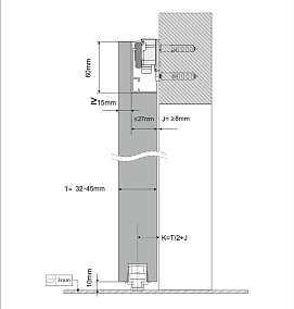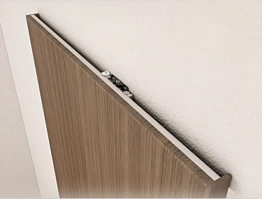 Механизм-стационарный верхний ролик устанавливается на стену и держит основную нагрузку, а несущая направляющая врезается в дверное полотно и имеет по доводчику в каждую сторону. Внизу двери в специальный профиль устанавливаются невидимые нижние поддерживающие ролики, обеспечивающие стабильное движение двери.