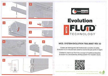 - FLUID EVOLUTION Раздвижная система на 1 полотно +2 встроенных доводчика.Evolution — это революционная раздвижная система для внутренних стеклянных и деревянных дверей, созданная на основе традиционной концепции стандартного кронштейна, доступная с новыми демпферами Fluid . Система Evolution имеет расстояние до пола всего 6 мм; он оснащен резиновой системой демпфирования, которая значительно снижает уровень шума.